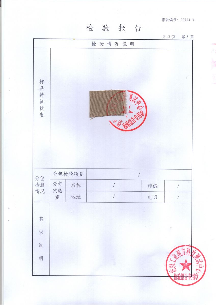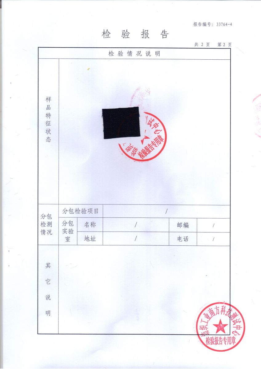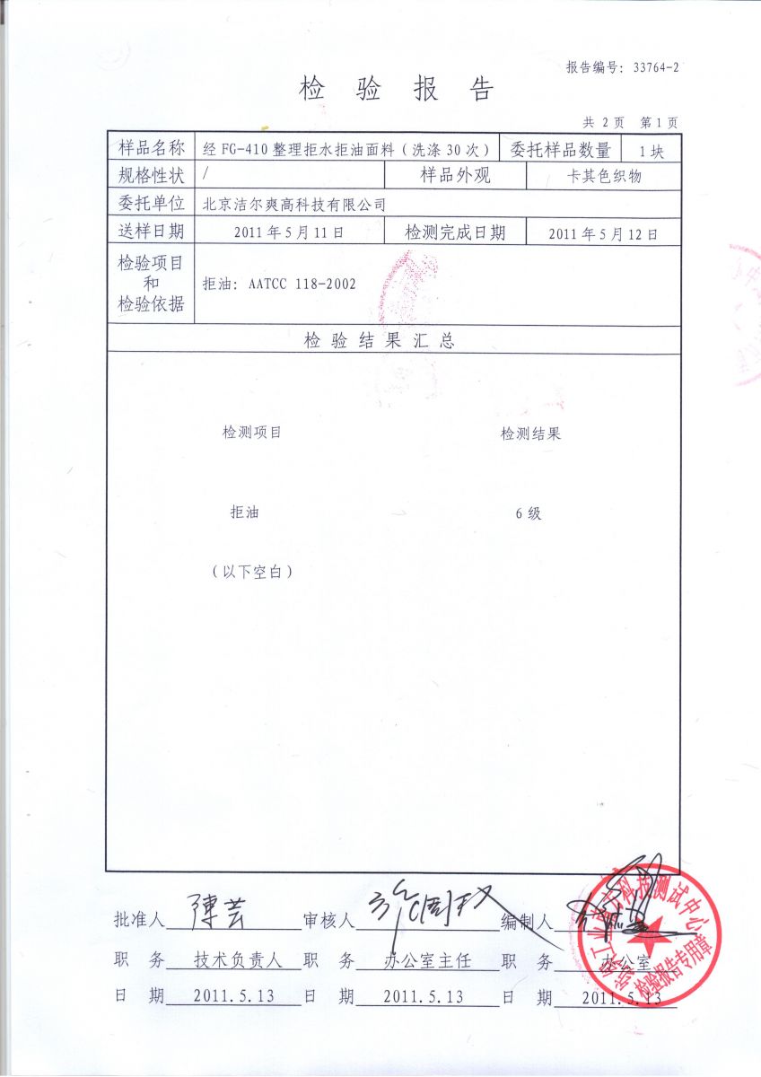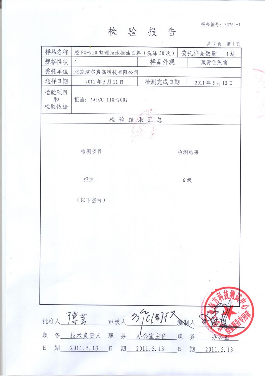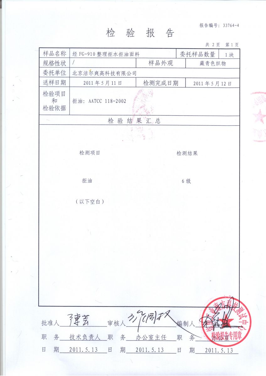 拒油拒水整理劑測試報告(紡織工業(yè)南方檢測中心;國家軍需產(chǎn)品檢測中心)