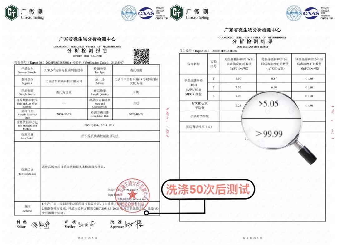 抗菌抗病毒性能:賦予織物對革蘭氏陽性菌、革蘭氏陰性菌有廣譜抗菌作用及對流感病毒等在內(nèi)的多種致病微生物有高效的抗病毒活性。