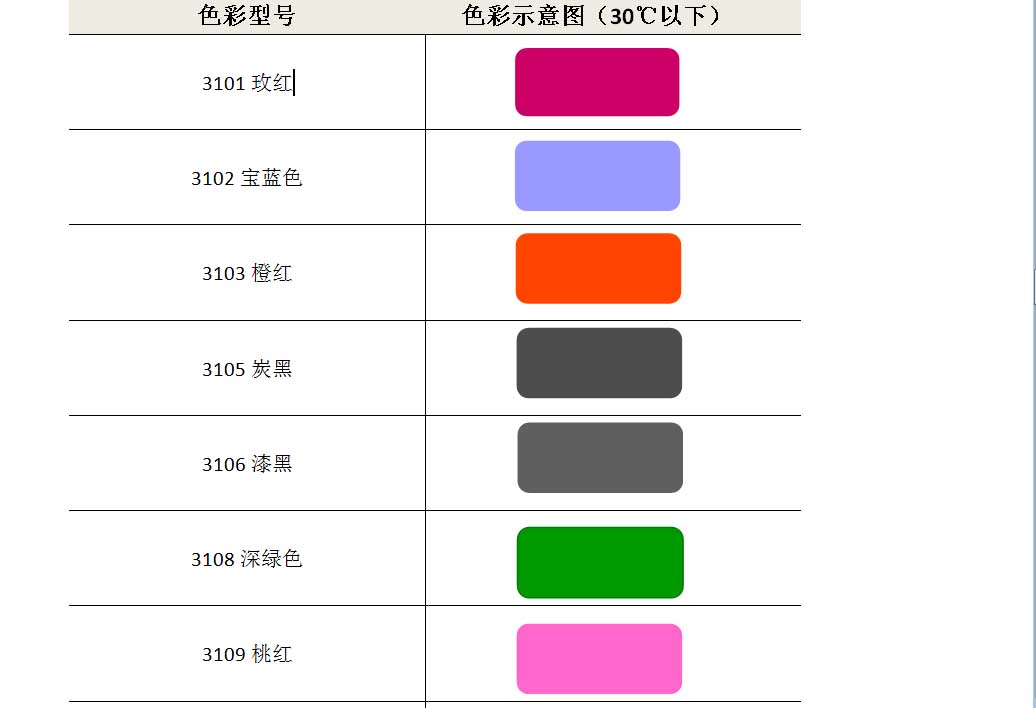 溫變顏料漿產(chǎn)品有 15 個(gè)基本色,可以使用不同顏色/不同變色溫度/不同系列的變色顏料之間可以互配和拼色,從而獲得更加豐富多彩的變色效果。